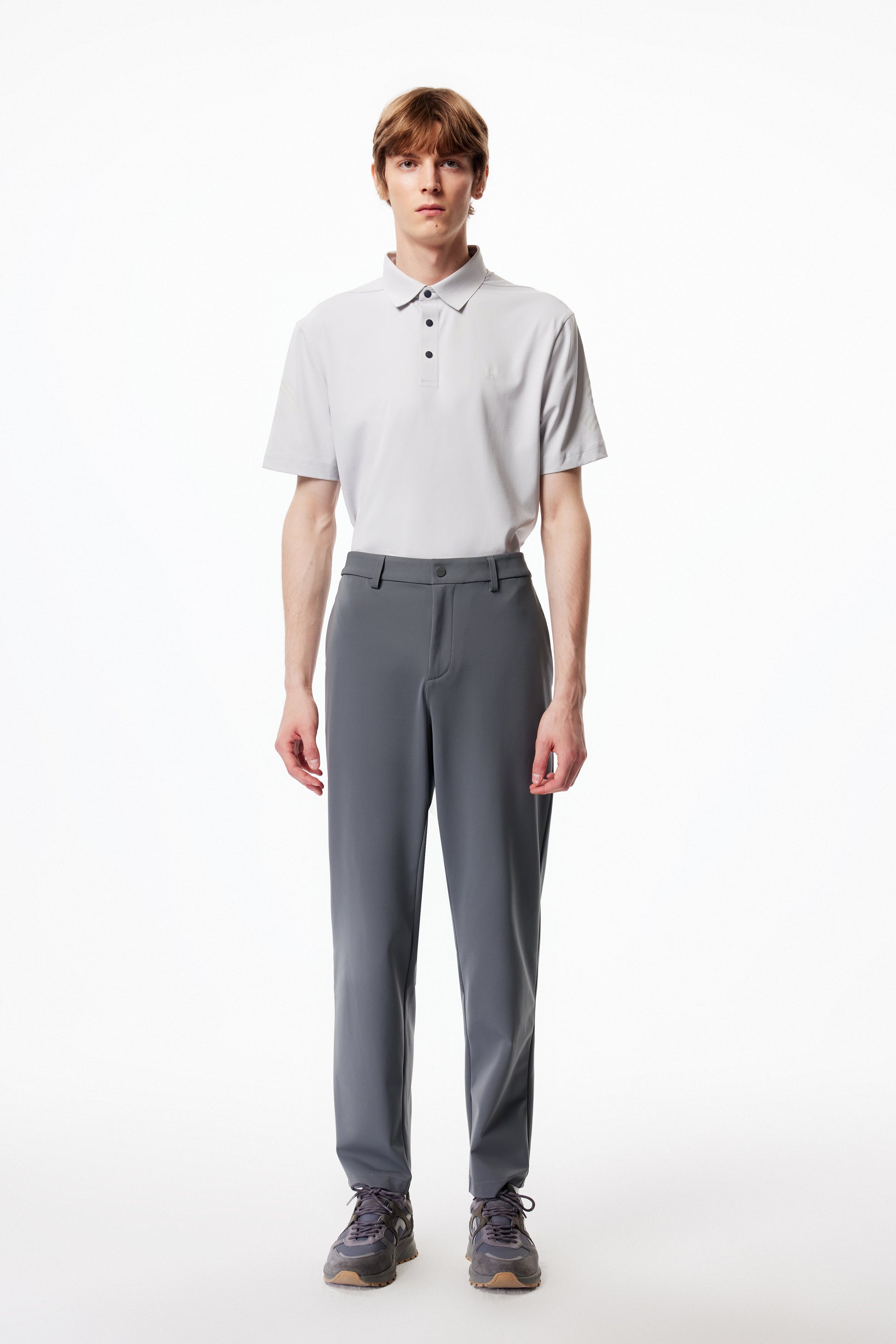 •後腰簡約Logo夾標。門襟四合扣,方便穿脫。