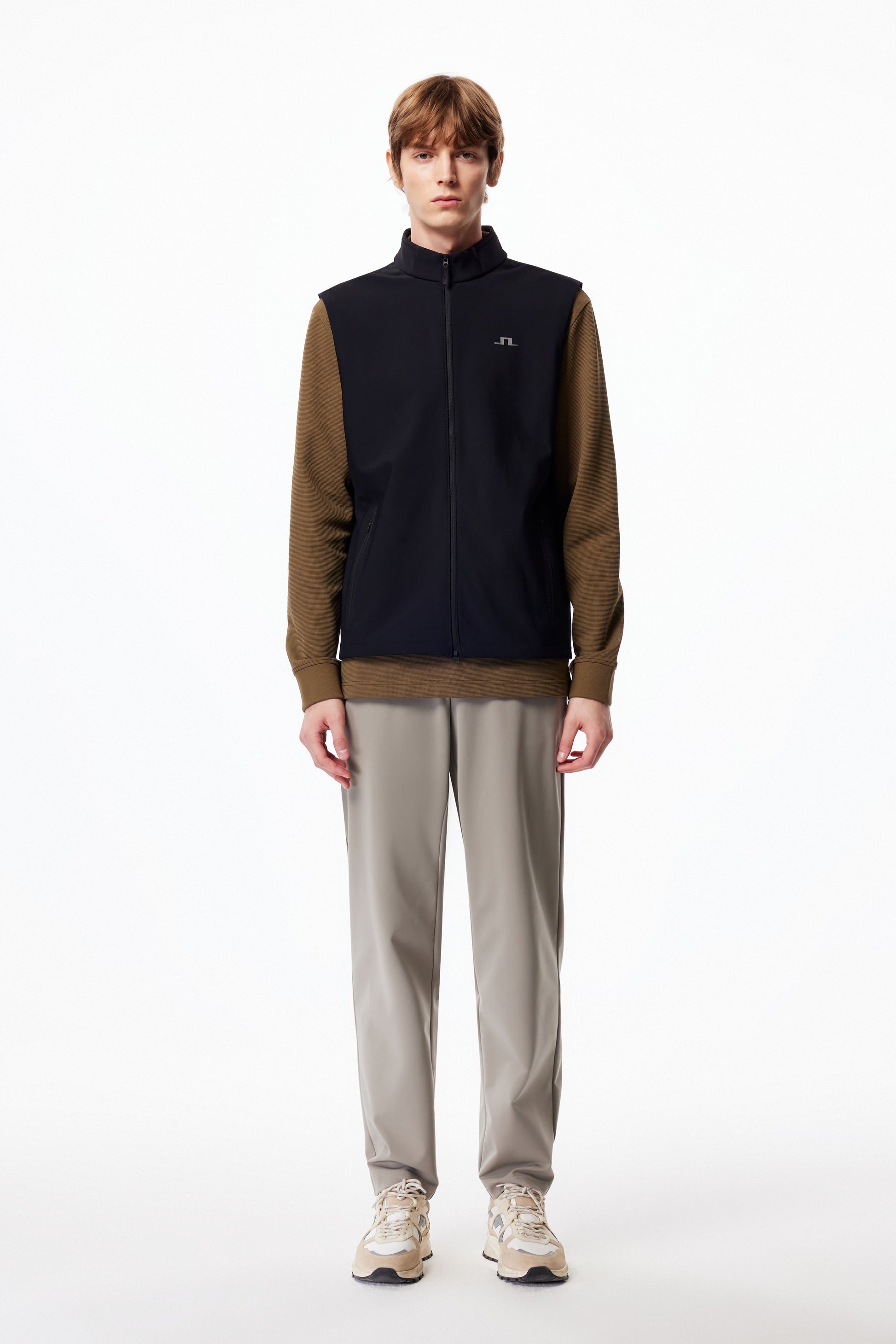 •立領設計,領口拼接螺紋;前胸橋型LOGO。
