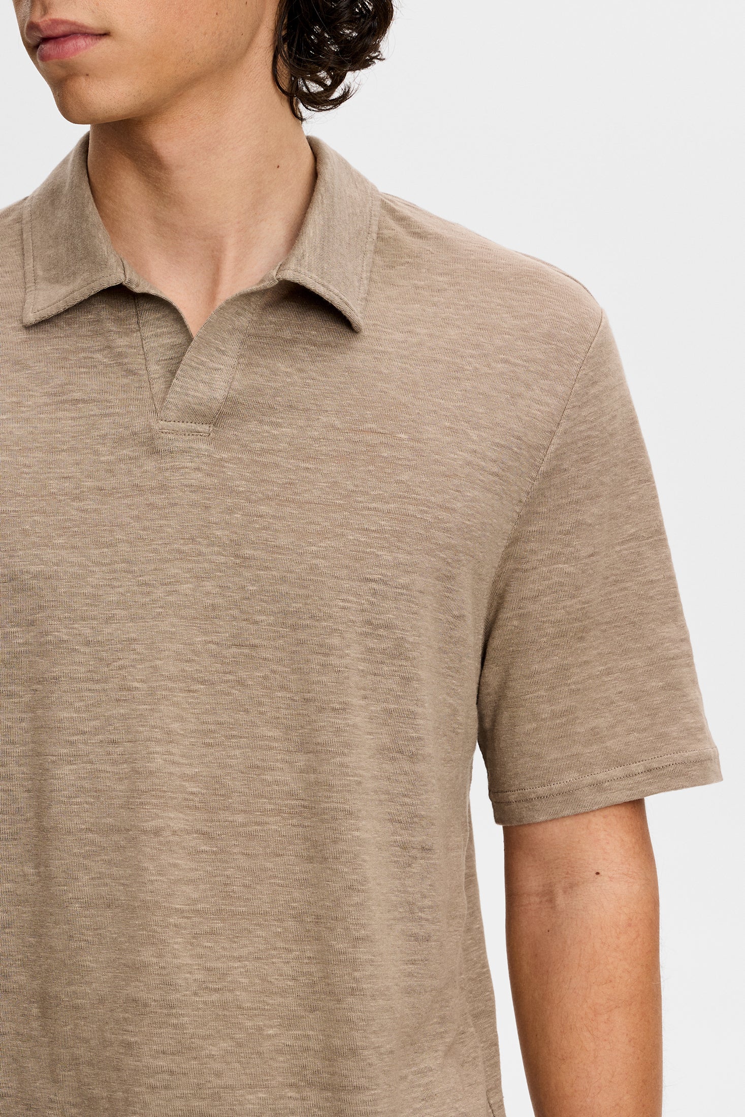 亞麻V領短袖Polo