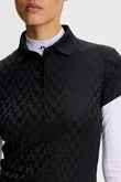 .針織羅紋領、滿版立體緹花紋理
